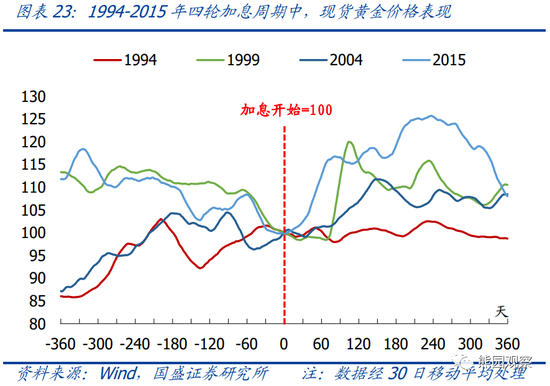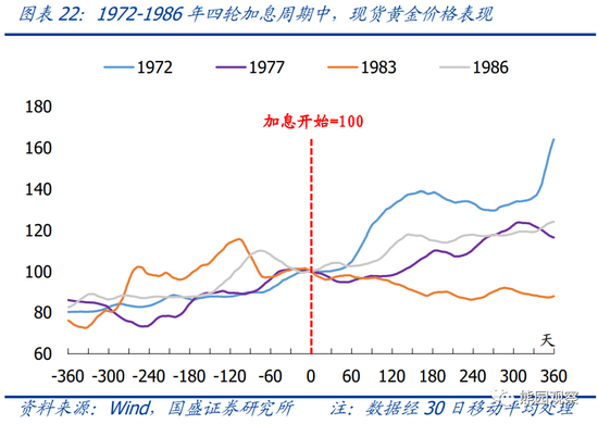 >黄金:历轮加息周期开始后,现货黄金价格短期内大多表现为上涨,但持续时间不稳定;中长期大多重新开始下跌。