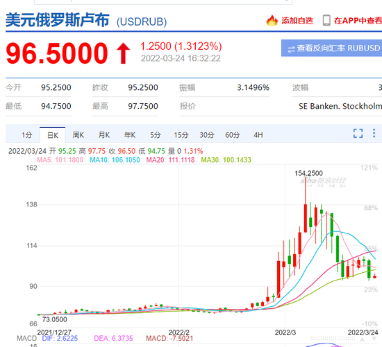 据报道,本月早些时候,由于西方前所未有的制裁重创俄罗斯经济,卢布跌至历史低点,3月7日跌至132卢布兑1美元和147卢布兑1欧元的创纪录低点。