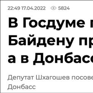 (观察者网讯)据俄新社4月17日报道,俄罗斯国家杜马安全和反腐败委员会成员阿达尔比·什哈戈舍夫(Adalbi Shkhagoshev)日前告诫美国总统拜登称,他不应当访问乌克兰首都基辅,因为在那儿他将面临生命威胁。相反,拜登应当前往顿巴斯地区了解事情真相。