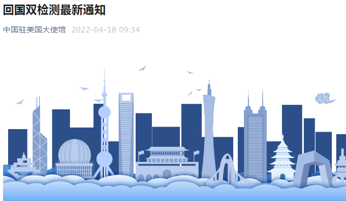 原标题:速看!中国驻美国大使馆发布最新通知,4月22日起,回国双检测有这些调整