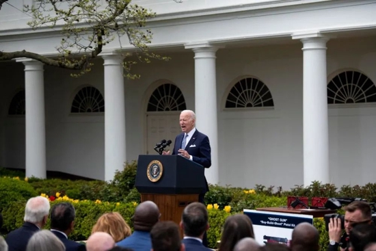 4月11日,美国总统拜登在华盛顿白宫发表讲话。新华社记者刘杰摄