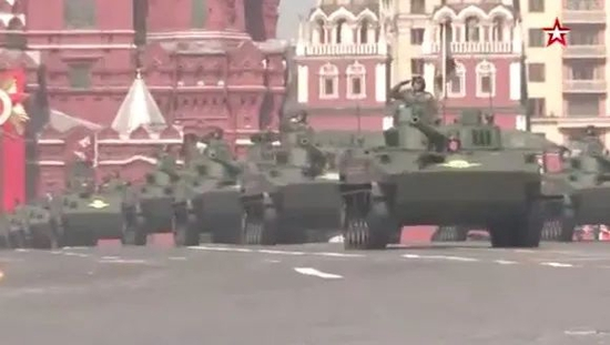 随后,俄军履带式、轮式装备和防空系统等主力武器装备相继通过红场,包括T-14“阿玛塔”、T-72B3M 、T-90M坦克,“台风-K”装甲车,“伊斯坎德尔-M”弹道导弹系统,“亚尔斯”洲际弹道导弹系统,“山毛榉-M3”、“道尔-M2”、S-400防空导弹系统和“天王星-9”战斗机器人等装备。