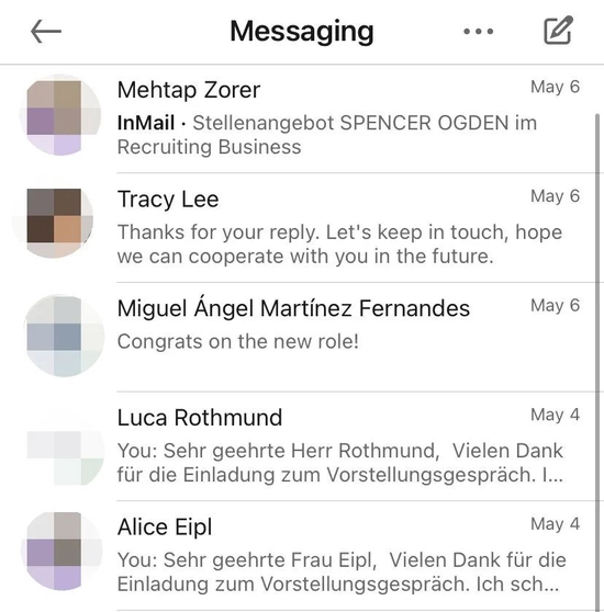 其妻子仍在德国工作,受邀约信息更频繁