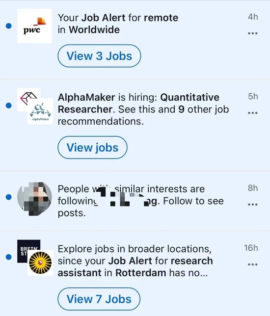 她告诉小巴,荷兰已经开启“复工潮”,市场的招聘热度颇高。比如,她的LinkedIn页面提示“有符合条件的工作”从几天一条变成一天几条。其中“商业分析和可视化类的position很多,从适合学生的mini job到全职都比2020年那会儿多很多”。