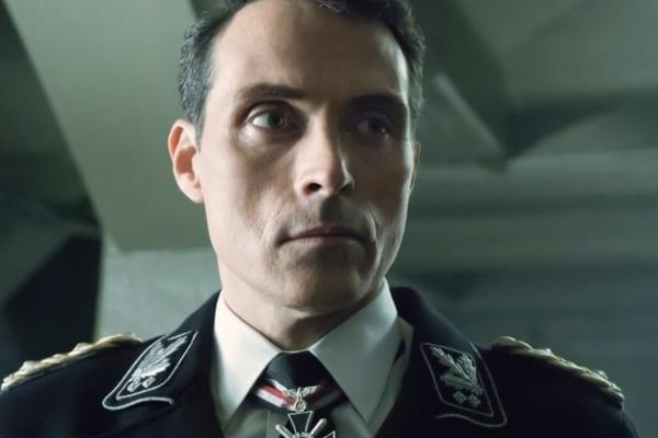 《高堡奇人》主角John Smith身穿纳粹服装,卡默泽尔张贴的图案就是他衣领部分的图案
