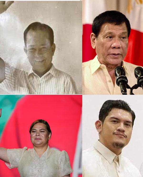 杜特尔特家族祖孙三代。韦森特·杜特尔特(左上)、罗德里戈·杜特尔特(右上)、莎拉·杜特尔特(左下)与塞巴斯蒂安·杜特尔特(右下)