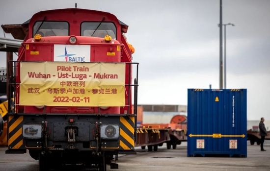 2月11日,来自中国武汉的货物经过国际海铁联运线路抵达德国穆克兰港。