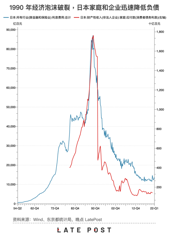 日本企业也经历了类似的过程。二战后,日本企业顺风顺水,习惯从银行贷款加速扩张、高价炒楼炒高尔夫球场。泡沫破灭后,企业抵押给银行的资产跌得一文不值,如果银行追究起来,这些公司都已经 “技术性破产”。于是日本企业也不再投资,甚至裁员降薪,用赚来的钱偿还债务,来修复资产负债表。