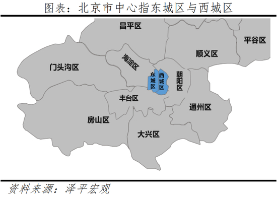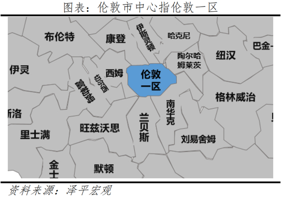 与西方相比,中国城市行政区划内面积较大,比如北京达1.6万平方公里,广州、上海、深圳分别为7434、6341、1997平方公里,而东京、伦敦、纽约、巴黎分别为2188、1577、789、105平方公里。为增强可比性,我们分别选择中心区以及距离市中心8公里左右的区域(我们将其定义为外围区)进行比较。具体来看,北京中心区指东城区和西城区,外围区指四环与五环之间区域;上海中心区指内环,外围区指中环与外环之间区域;纽约中心区指曼哈顿中城和下城,外围区指距离曼哈顿8公里左右区域;伦敦中心区指伦敦一区,外围区指三区与四区之间。
