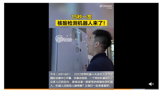 据北京晚报报道,8月18日,2022世界机器人大会在北京亦创国际会展中心开幕,在展会现场,有一款新型的核酸检测机器人。