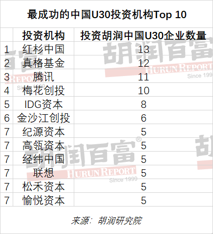最成功的中国U30、猎豹、瞪羚和独角兽投资机构