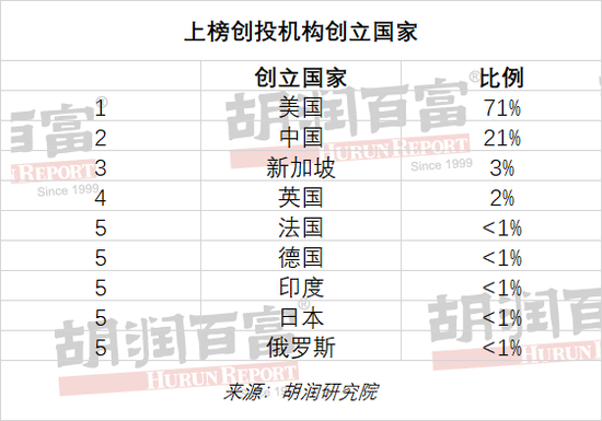 创立国家 虽然大多数上榜创投机构创立于美国,但其中很多机构,如红杉资本,在中国、印度和世界其他国家都有合伙人团队。