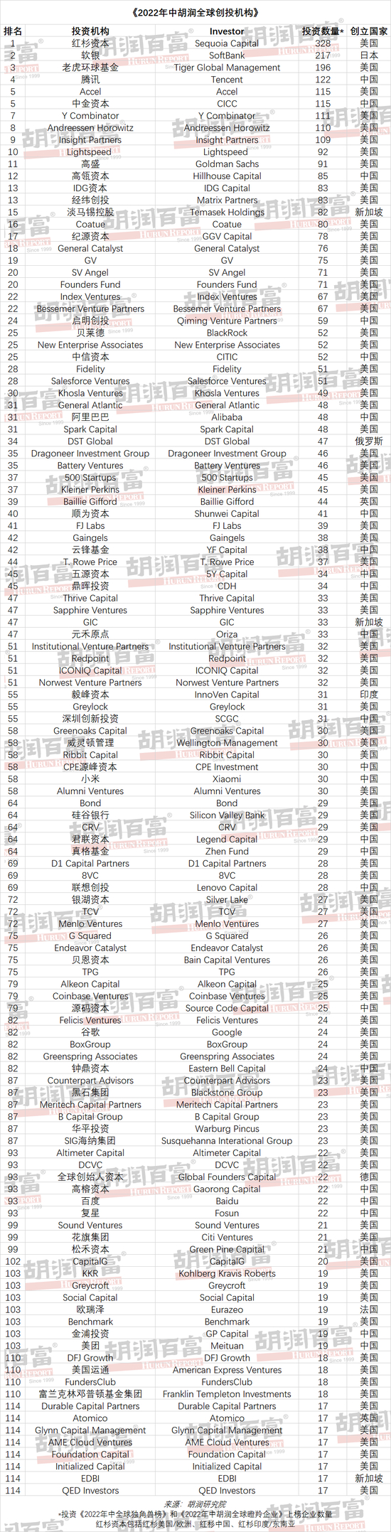 《2022年中胡润全球创投机构》