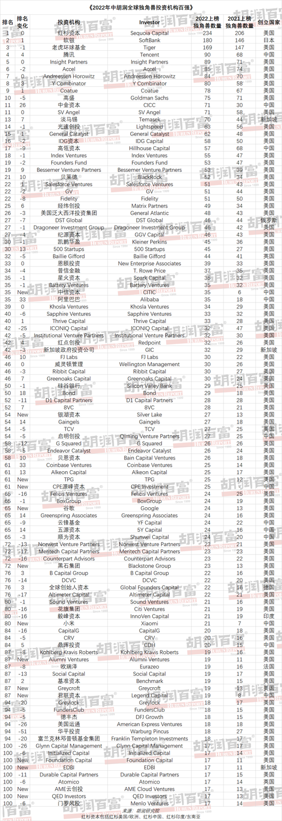 附录1 - 《2022年中胡润全球独角兽投资机构百强》