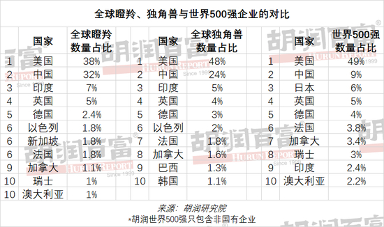全球瞪羚、独角兽与世界500强企业的对比