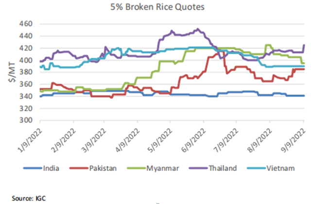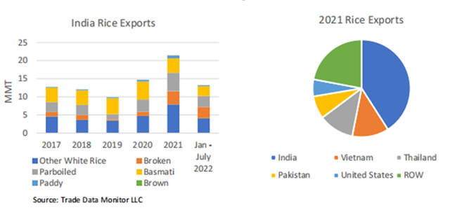 今年8月底,世界大米出口量排第二、第三的越南、泰国,就提高两国大米出口价格达成共识,并商定于10月6日至7日举行会谈,从而引发全球关注。而全球最大的大米出口国印度率先出手,宣布自9月9日起,禁止出口碎米,并对除蒸谷米和印度香米(巴斯马蒂大米)外的各种类大米征收20%的关税。