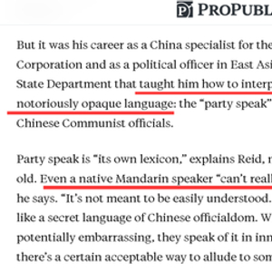 不过,从两家美国媒体故弄玄虚的文章来看,这个“任友飞”似乎很不简单,因为他能“破译”中国官方文件中那些“连中国人都不一定能读懂”的“晦涩官话”。