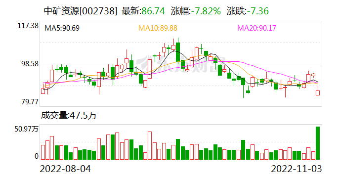 11月3日,中矿资源在公开回复中表示,子公司中矿(香港)稀有金属资源有限公司(以下简称“香港中矿稀有”)已收到加拿大政府相关告知函。告知函要求,香港中矿稀有应在本告知函签发之日的90日内,出售其持有的动力金属公司的股票;终止香港中矿稀有与动力金属公司签署的《包销协议》;香港中矿稀有提名任命的董事辞职。