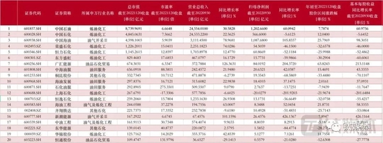 其中,市值前三的中国石油、中国石化和中国海油,今年前三季度营业总收入分别为24554.01亿元、24533.22亿元和3111.45亿元,同比增长了30.58%、22.56%和78.96%。以上游业务为主的中国石油和中国海油的归母净利润表现同样令人惊艳,前三季度归母净利分别为1202.66亿元、1087.68亿元,同比增长率分别为60.09%、105.85%。而中国石化前三季度归母净利为567亿元,同比下降5.6%。根据中石化财报可知,中国石化是中国最大成品油和石化产品供应商,主要业务是油品销售,原料以进口原油为主。受疫情影响,国内成品油需求萎缩、主要化工产品需求疲弱、毛利收窄,再加之国际原油价格大幅上涨,增加了中国石化的进口成本,抑制了其成品油销售量,对公司净利润造成影响。