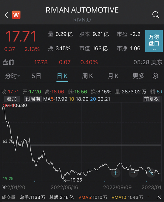 从过去一年的投资动向来看,索罗斯2021年四季度提前出逃科技股,却一头栽进了房地产的“坑”。截至2022年三季度,索罗斯的前三大重仓股中,地产股占据两席,分别是杜克房地产、霍顿房屋,这两只股票2022年均跌超16%。此外,索罗斯的第二大重仓股Rivian Automotive,在其整体持仓中占比近10%,这家被称为特斯拉劲敌的电动皮卡制造商,因产能不达标,2022年股价暴跌逾82%。