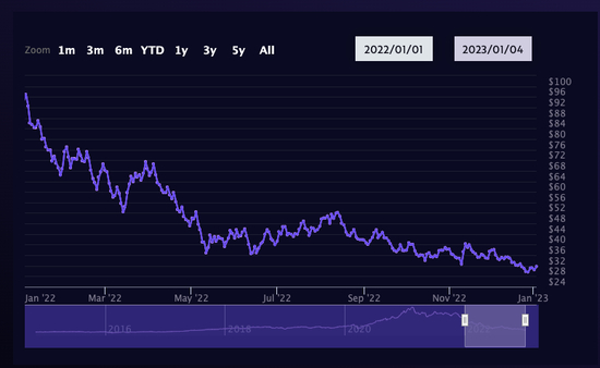 2022年,在美联储以及全球央行激进加息、利率上升的大背景下,科技公司未来的潜在回报下降,引发投资者的抛售潮。但木头姐一路逆行,一边抄底科技股,一边抄底数字货币。最终,木头姐旗下基金几乎全军覆没,2022年,ARK旗下旗舰基金ARKK亏损67%,ARKW、 ARKF等多只基金亏损超过50%。