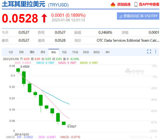 汇率方面,2022年土耳其里拉兑美元贬值约29%。事实上,自从2014年以来,土耳其里拉兑美元汇率每年都在贬值。