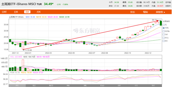 2022年,按照土耳其里拉计价,土耳其股指在2022年涨幅接近190%,为全年全球表现最好的股市之一。