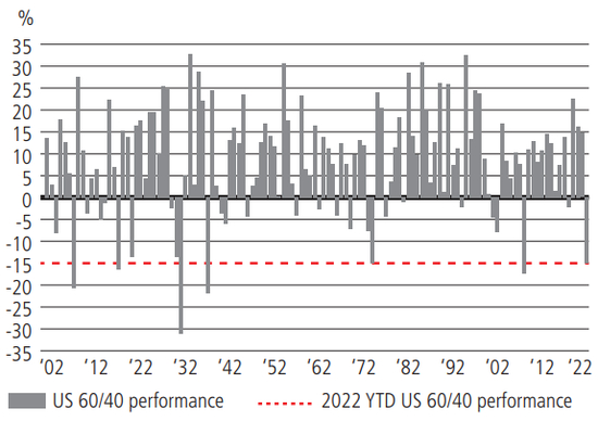 美国60/40投资组合回报率(截至2022年11月16日)来源:Goldman Sachs Investment Research Division