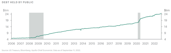 美国公众持有的美国政府债券数量处于历史高位 图:Apollo