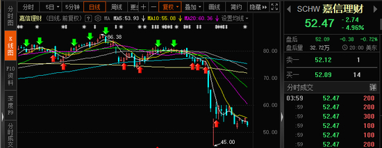 目前,市值超过5000亿人民币的嘉信理财股价已经大幅杀跌。