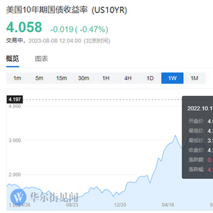 自7月下旬以来,美债收益率一路飙升,周一再度攀升。除了美债发行规模超预期外,多重因素共同推动这一走势,日本央行调整YCC区间上限、美国遭惠誉下调评级以及经济软着陆预期加强等。