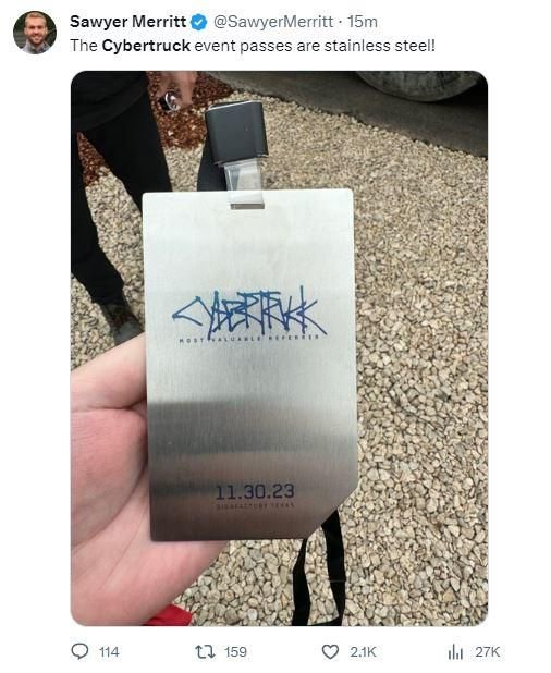 稍早,有疑似粉丝的人或科技媒体搭乘了Cybertruck,并发出了“嘿嘿嘿”的兴奋傻笑声,不少人转发称“这就是我现在的感受!”