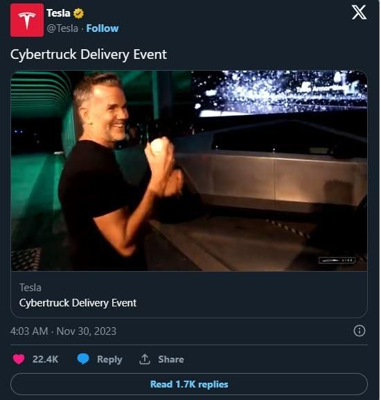 此前,11月30日周四接近美东下午1点,特斯拉CEO马斯克在社交媒体上称,将于两小时内开始交付首批电动皮卡Cybertruck。