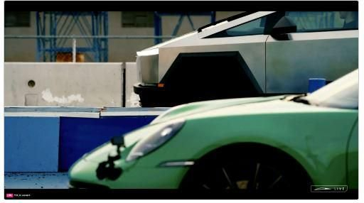 同时,Cybertruck牵引着一辆保时捷911跑车,竟然在直线加速赛中击败了另一辆保时捷911。