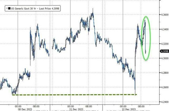 标售结果公布后,二级市场30年期美债收益率转降,基准十年期美债收益率的降幅有所扩大,体现标售的优异表现让一些之前预计会是一场灾难的投资者吃惊,但还未降至公布CPI前的日内低位。打击了市场降息预期的11月美国核心CPI公布后,美债收益率集体跃升超过10个基点,抹平日内降幅刷新日高。