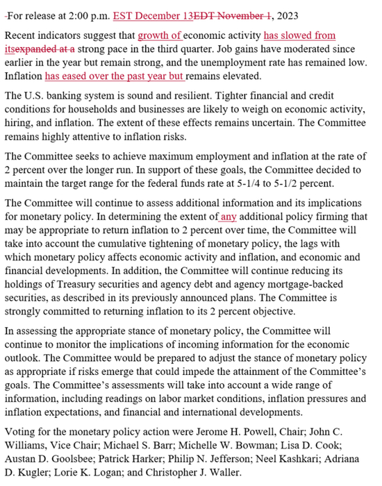 本次美联储决议公布后,被视为“美联储喉舌”、有“新美联储通讯社”之称的记者Nick Timiraos发文称,联储将利率保持稳定,同时暗示,通胀好转的速度比预期快,为明年降息敞开大门。