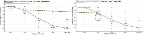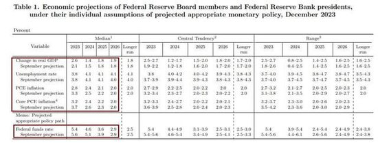 - 2023年底的联邦基金利率为5.4%,较9月预计的5.6%下调20个基点。