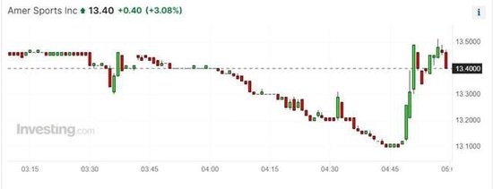 美东时间2月1日周四,亚玛芬体育以AS为交易代码在纽交所挂牌上市,开盘价报13.40美元,较发行价涨近3.1%,午盘曾涨至13.80美元,盘中涨幅扩大到近6.2%,最终收报13.40美元,收涨近3.1%。