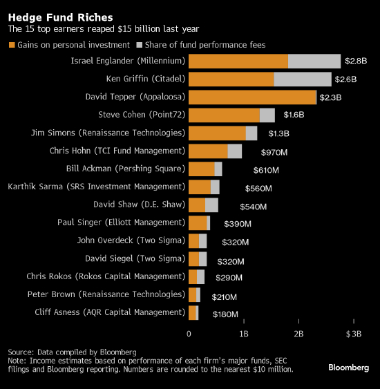 其实以前对冲基金经理的收入更高,包括Ackman在内。2020年,他的收入是13亿美元,排名第九,前15位基金创始人总收入为232亿美元。