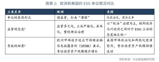 总体来看,发达市场对ESG的争议可概括为两大类:一是“产品漂绿论”,即认为立法与监管的不足导致ESG沦为品牌公关工具,企业表现良莠不齐乃至误导消费者;二是“投资有害论”,即认为ESG(策略)对投资回报无益甚至会误导投资、有损回报等。目前,欧洲ESG之争主要是第一种,而美国ESG之争主要是第二种。