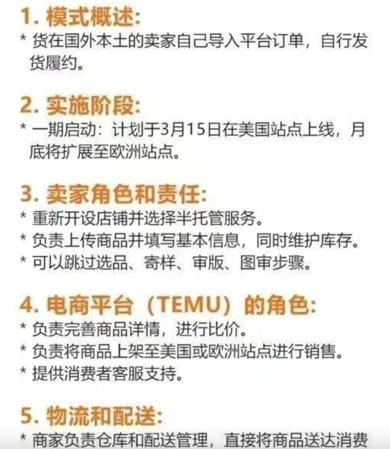 半托管模式的引入是拼多多的重大变化。一季度,Temu推出“半托管”业务,先在美国站点上线,随后扩展至欧洲站点。半托管是借鉴了速卖通,平台不再选品、寄样、审版、图审等,卖家需要完成包括仓库管理、发货履约、维护库存、末端配送、逆向物流在内全流程的物流服务。