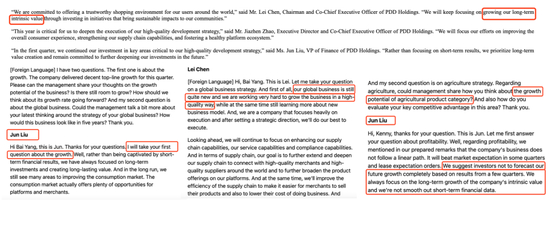 对于这些问题,陈磊没有正面回答,财务副总裁刘珺表示,“面对越来越多的行业竞争,拼多多一直以来的关注重点都在于为消费者、商家提供更多价值。我们相信,拼多多为消费者、商家创造的价值最终也将反映在公司的财务业绩中。”她还进一步强调,“始终关注公司内在价值的长期增长,而非过度关注短期财务数据。”