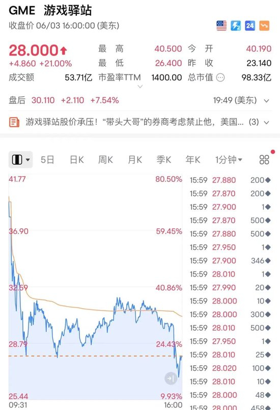 “散户抱团股”概念再度异动,游戏驿站盘中一度涨75%,收盘涨21%。此前知名投资网红“咆哮小猫”曾晒出投资游戏驿站股票和看涨期权的持仓数据。