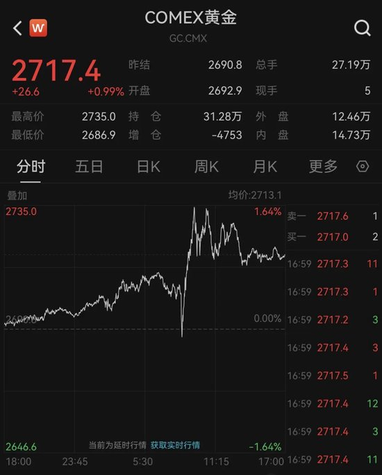 此外,国际金价也涨了,截至收盘,COMEX黄金涨0.99%,伦敦金现涨0.76%。