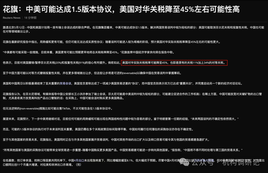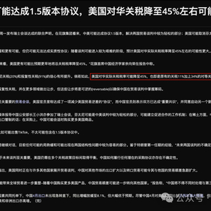 :中美可能达成1.5版本协议,美国对华关税降至45%左右可能性高