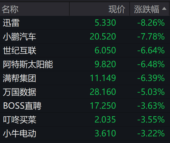 纳斯达克中国金龙指数跌1.18%。热门中概股多数收跌,小鹏汽车跌超7%,阿里巴巴、百度、理想汽车、蔚来跌超1%。