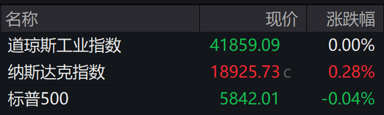 美股三大指数收盘涨跌不一,道指收平,纳指涨0.28%,标普500指数跌0.04%。
