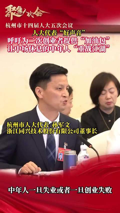 #杭州市十四届人大五次会议 市人大代表孙军文:呼吁为二次创业者提供“加油包”,让中场休息的中年人“拍拍灰尘 重战江湖”