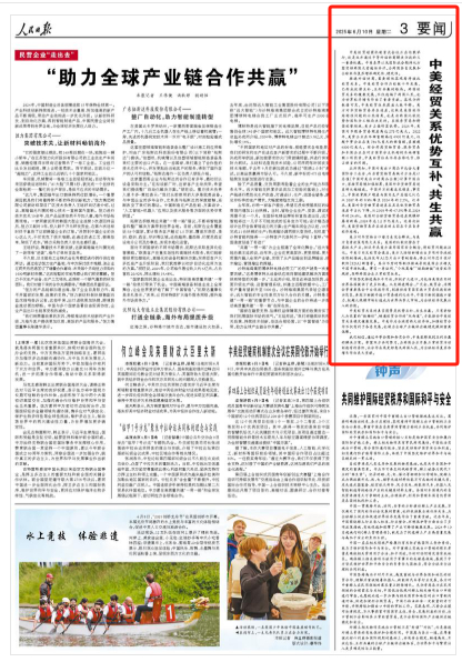 人民日报钟声:中美经贸关系优势互补、共生共赢