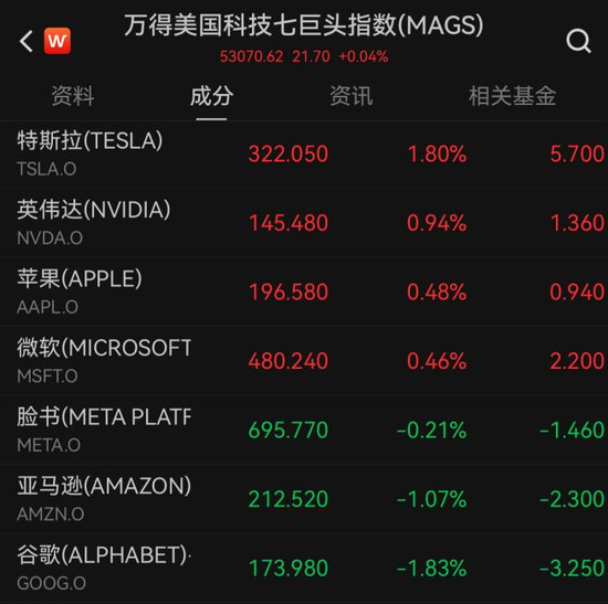 美股大型科技股涨跌不一,Wind数据显示,万得美国科技七巨头指数小幅上涨0.04%。成分股中,特斯拉涨1.80%,英伟达、苹果、微软跟涨,谷歌跌1.83%、亚马逊跌1.07%、脸书跌0.21%。